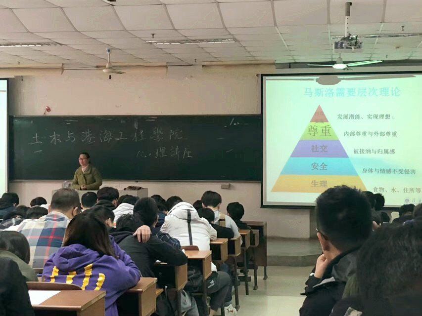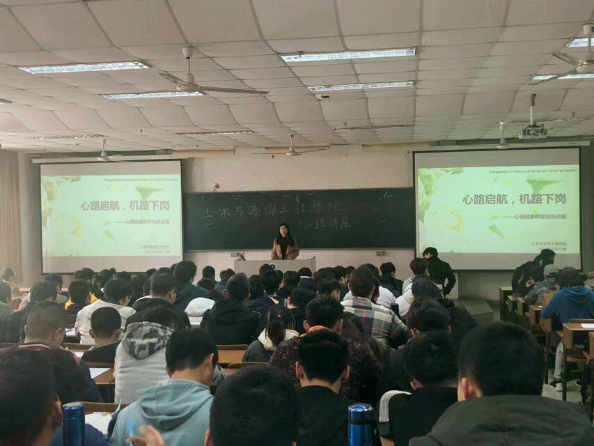 2019年4月10日,公司在通灌校区至善楼102教室成功开展了“心路启航,机路下岗”心理讲座。活动由土木院辅导员卞辉老师主持,由她特别邀请了电子工程公司副教授、国家二级心理咨询师孙晋老师为190多名大一员工主讲。