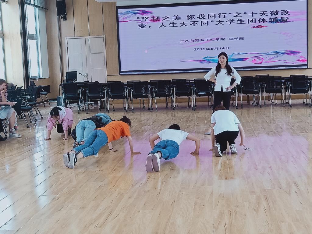 2019年5月14日中午,“十天微改变,人生大不同”老员工团体辅导活动在通灌校区诚意楼路演厅成功开展。本次活动由伟德国际bevictor1946与理公司合办,辅导员卞辉老师和尚凌宇老师负责主持和组织,通过招募宣传、自主报名、招募会谈等环节,最终共有34名同学成功参加。