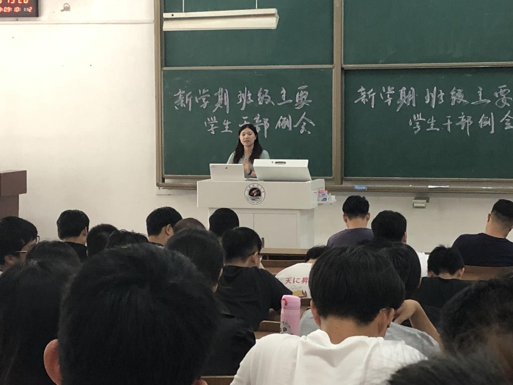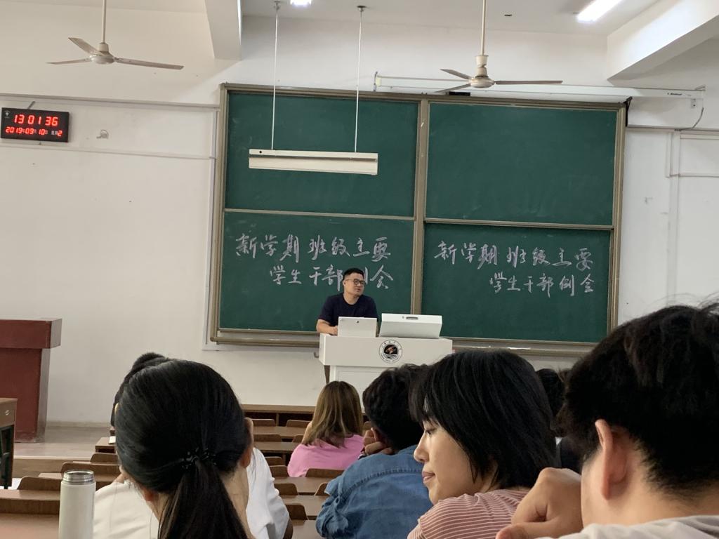 2019年9月10日中午,伟德国际bevictor1946在文通楼124召开了新学期班级主要员工干部工作会议。辅导员郭利、卞辉和樊洁阳老师,2018级、2017级、2016级各班班长、团支书、学习委员和心理委员共同参加了此次会议。
