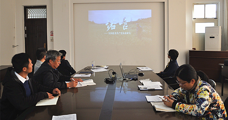 会后全体党员观看《诺言》、《孤岛32年》专题片。