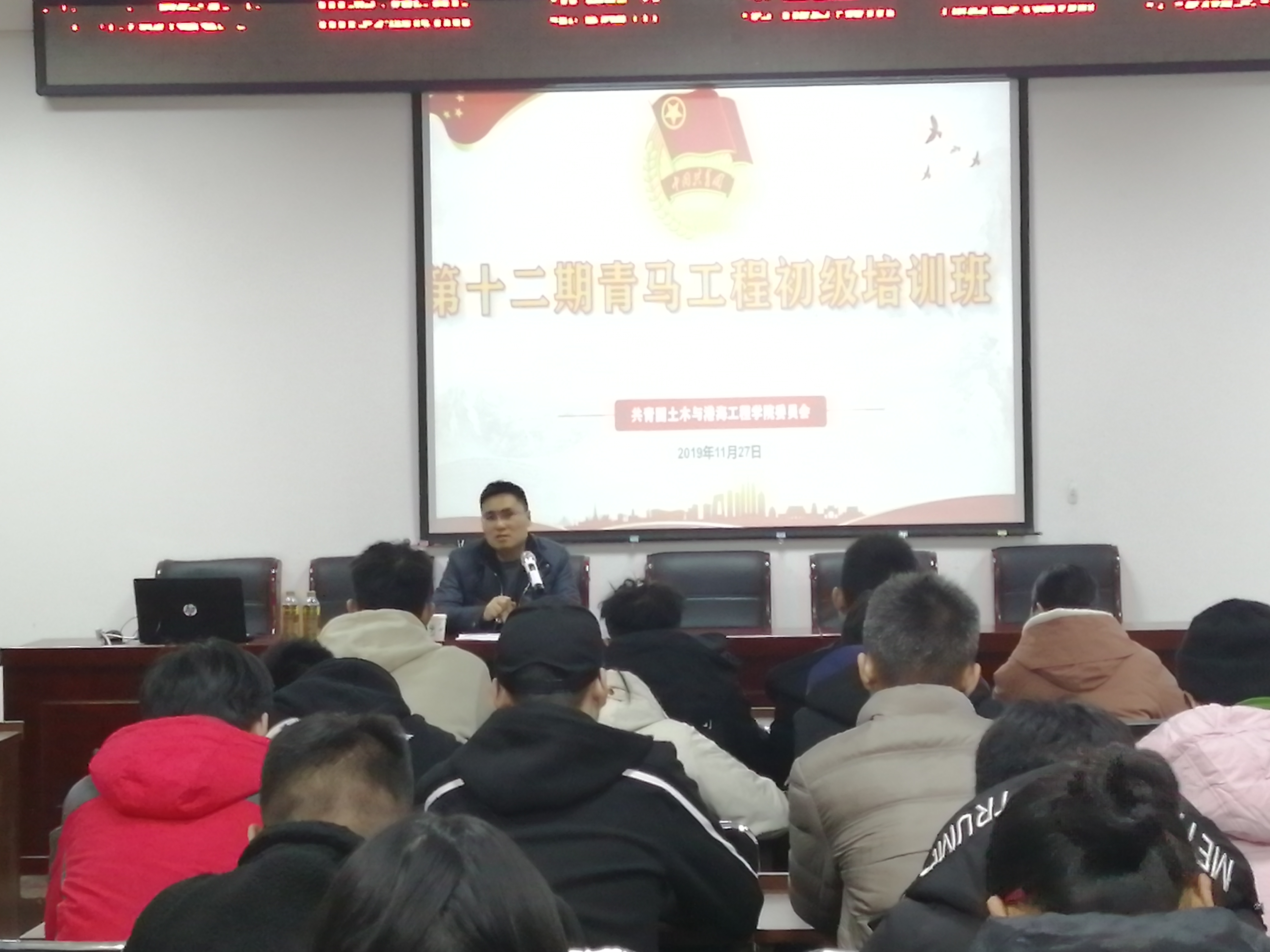 2019年11月27日,公司第十二期青马工程初级培训班第二次培训课程在土木楼南楼207成功举办。本次培训课程由公司原法公司团委副书记,现马克思主义公司党政办主任、副教授崔家新主讲,院团委副书记卞辉负责主持,近60名青马班学员全部参加。