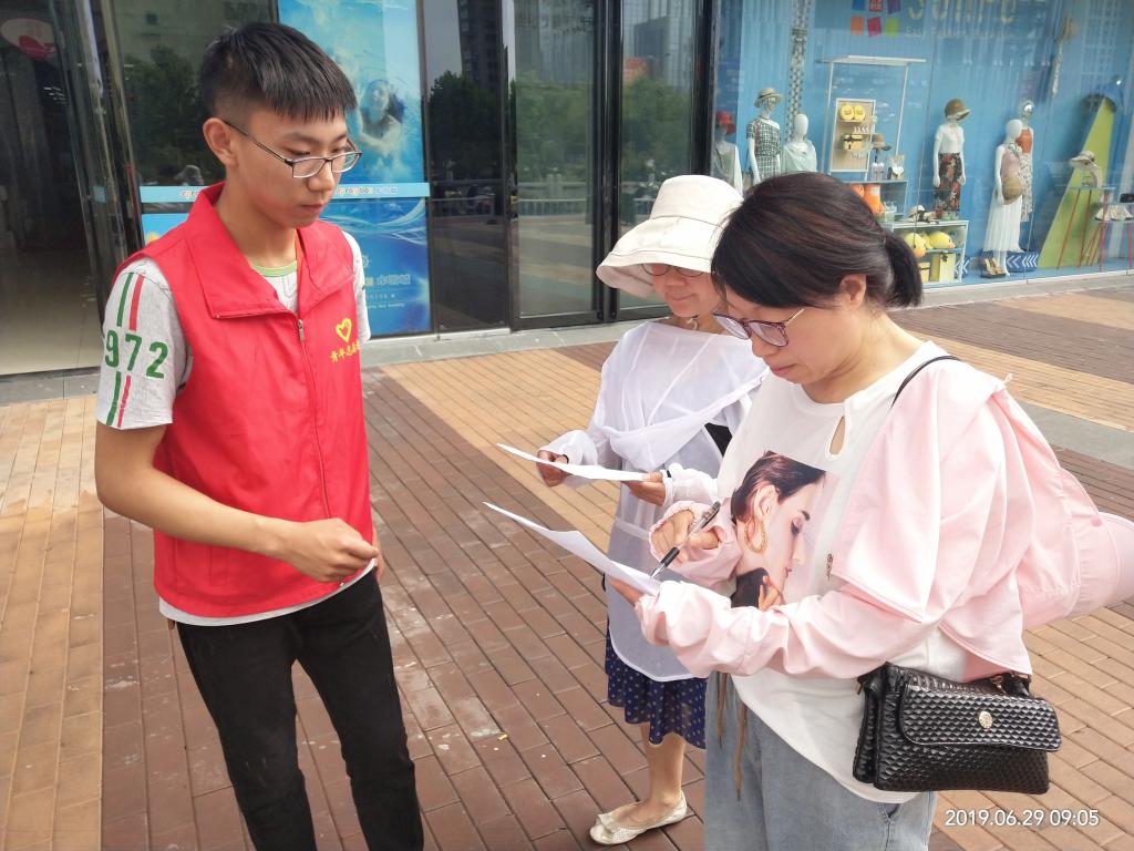 队员们采用“地毯式”的方式进行宣传。调查过程中,许多围观群众对于“自闭症儿童”这个话题很感兴趣,尤其是在听到我们的实践初心之后,纷纷上前来了解情况并热情地填写问卷,同时在我们的横幅上签名,为自闭症儿童送上一份祝福。