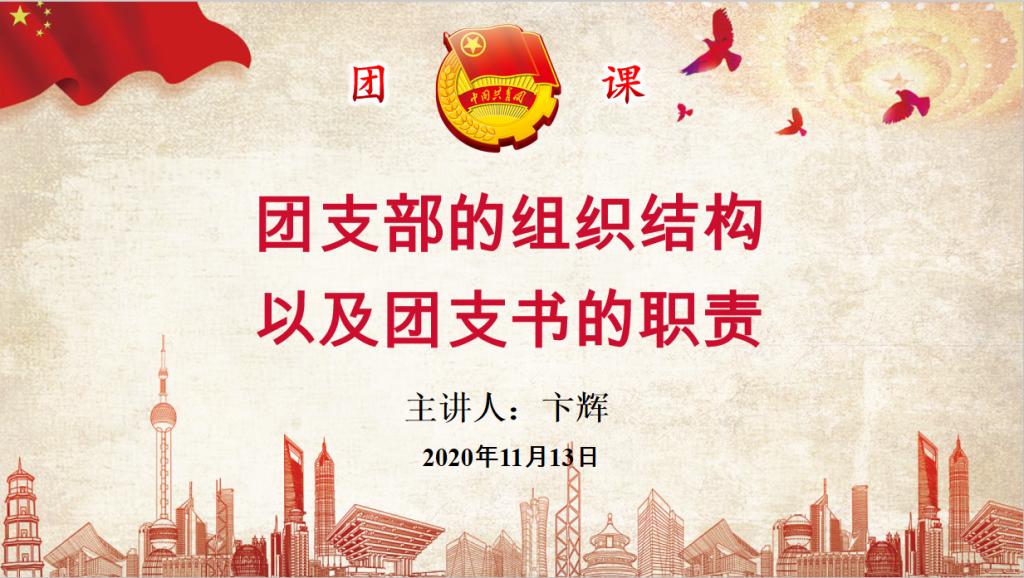 此次团课主要以团支部组织结构,团支书的职责,三会两制一课,总结与展望四个内容进行。卞辉老师强调,班级团支部作为团的基层组织,是团工作和活动的基本单位,而班级团支书作为班级团日活动的主要负责人,起着重要的沟通交流作用。好的团日活动可以团结支部成员,扩大支部影响力,要求各支部团支书在完成基本工作的同时要加强与同学的沟通与交流,注重团支部内部建设,做好“团推优”工作。