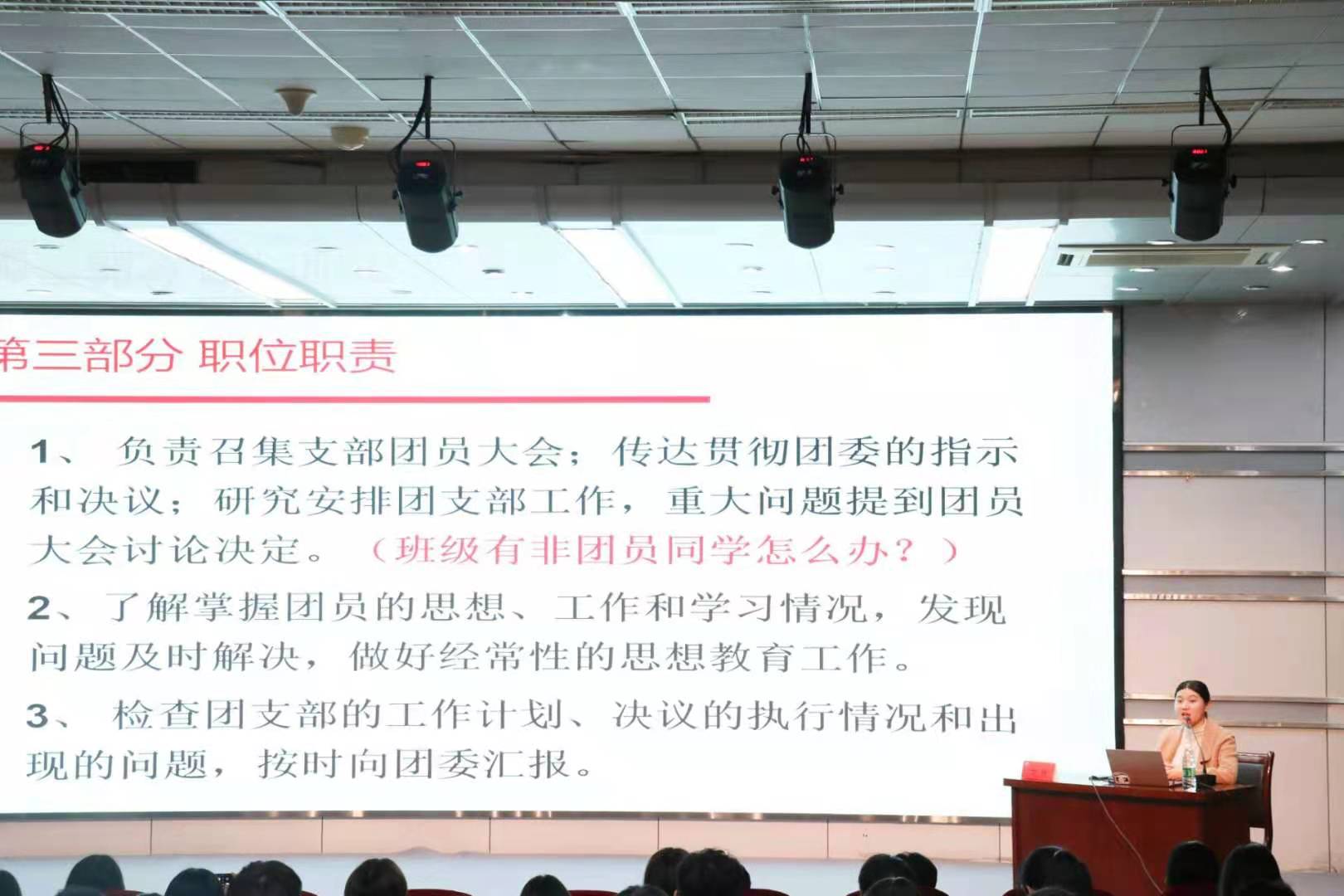 为不断推动基层团组织建设,提高团干理论素质和工作能力,11月13日,校团委于艺术楼报告厅举行伟德国际bevictor1946团支部书记专题培训大会。本次培训会一团课的形式开展,以“团支部的组织结构以及团支书的职责”为主题,由伟德国际bevictor1946团委副书记卞辉老师主讲,公司19级、20级各支部团支书参与培训。