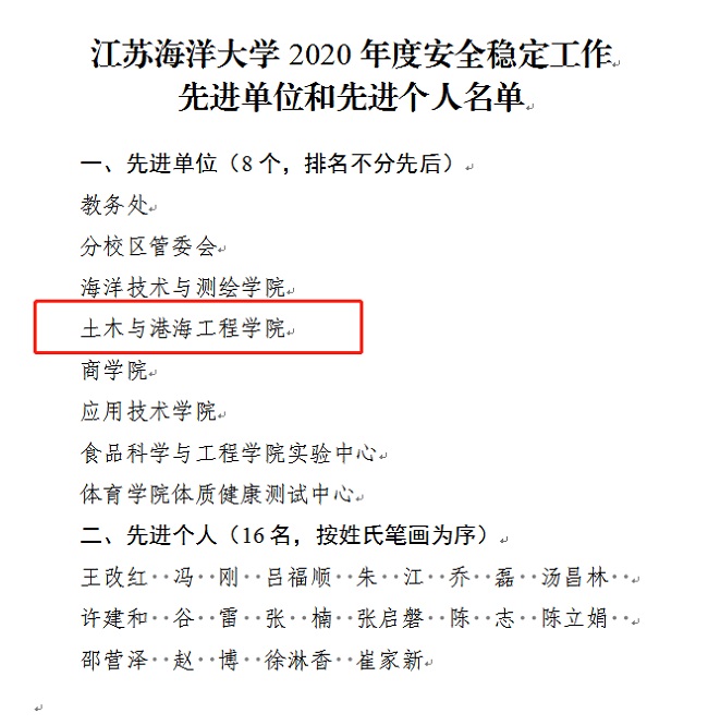 近日,从公司下发的《伟德国际bevictor1946关于表彰2020年度安全稳定工作先进单位和先进个人的决定》(江海大〔2021〕30号)获悉,公司被评选为2020年度校安全稳定工作先进单位。