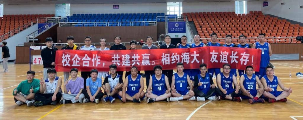 揭牌仪式后,校企双方在公司体育馆展开“相约海大,共建共赢”主题团日篮球友谊赛,三航局篮球队和土木师生联队在轻松友好的氛围下以球会友,切磋交流。