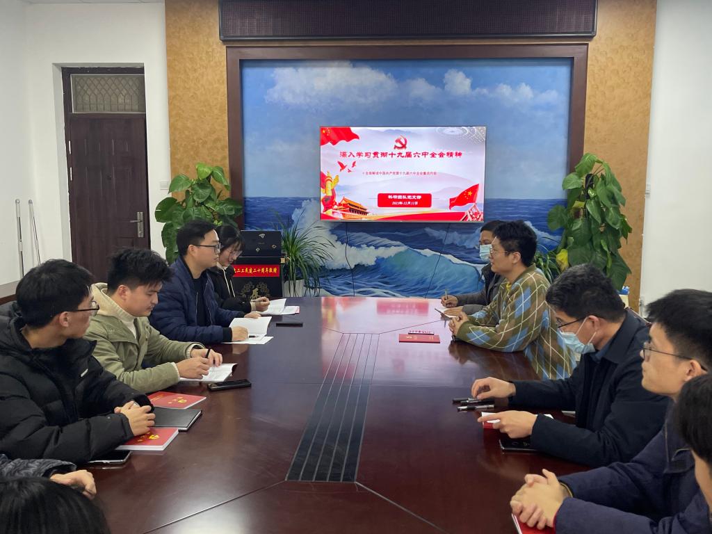 支部成立大会结束后,科研团队党支部全体党员随即进行了第一次专题学习活动,学习党的十九届六中全会精神。张驿介绍了党的十九届六中全会主要内容,并带领支部全体党员重点解读党的百年奋斗取得的重大成就和中国共产党百年奋斗的历史意义和历史经验,强调了十九届六中全会的重要意义,要求全体党员进一步增强“四个意识”、坚定“四个自信”、做到“两个维护”,把学习、科研成果切实转化为推动技术进步的生动实践。全体党员一致表示,将把进一步深入学习贯彻党的十九届六中全会精神作为重要任务,从百年党史中汲取智慧,不断学习,不断自我革新,为新时代中国特色社会主义建设贡献一份力量。