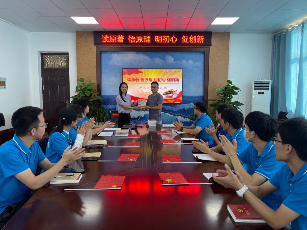 王改红代表公司为科研团队党支部成员赠书,希望全体党员能够学深悟透,常新常学、常思常悟,紧密结合实际,大胆创新,践行初心使命,以昂扬的斗志迎接党的二十大胜利召开。