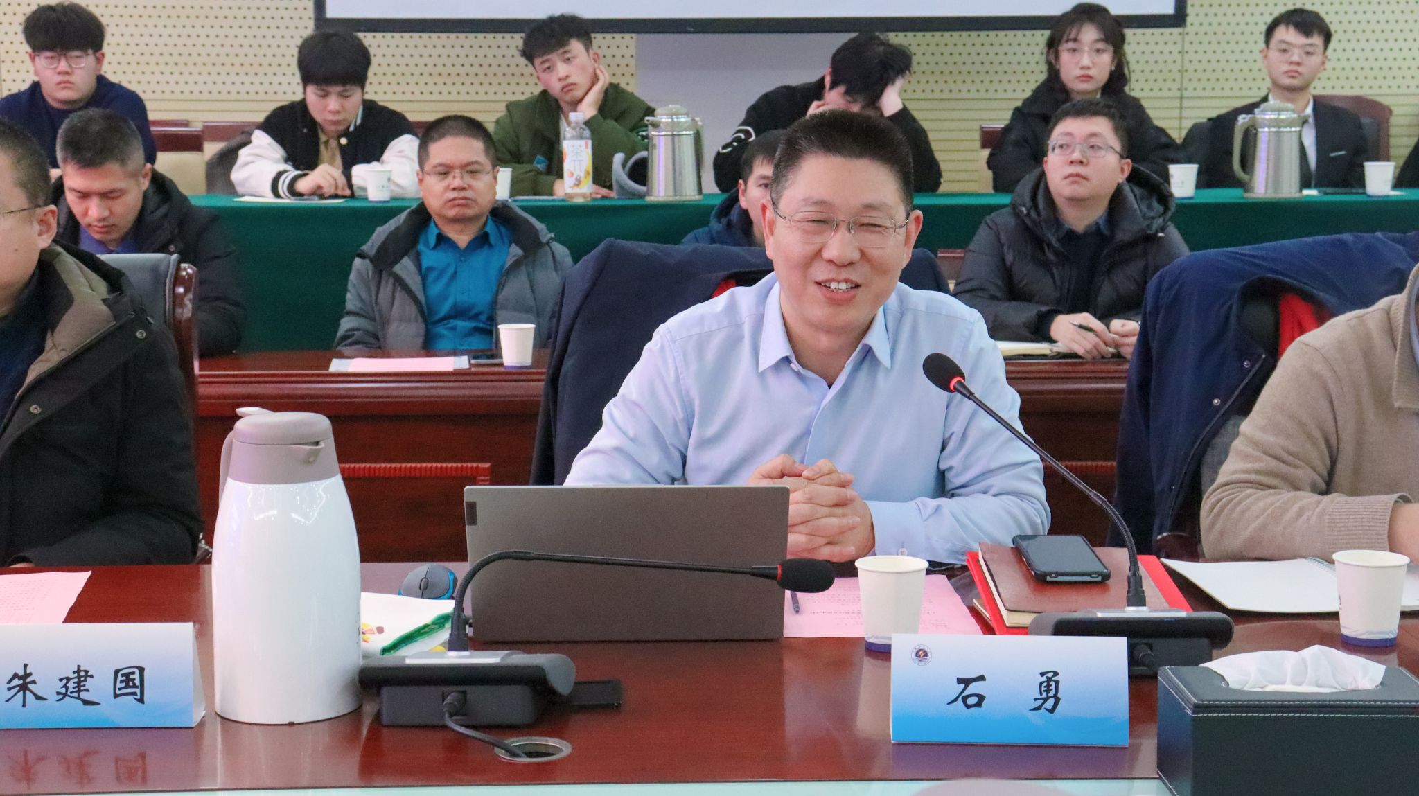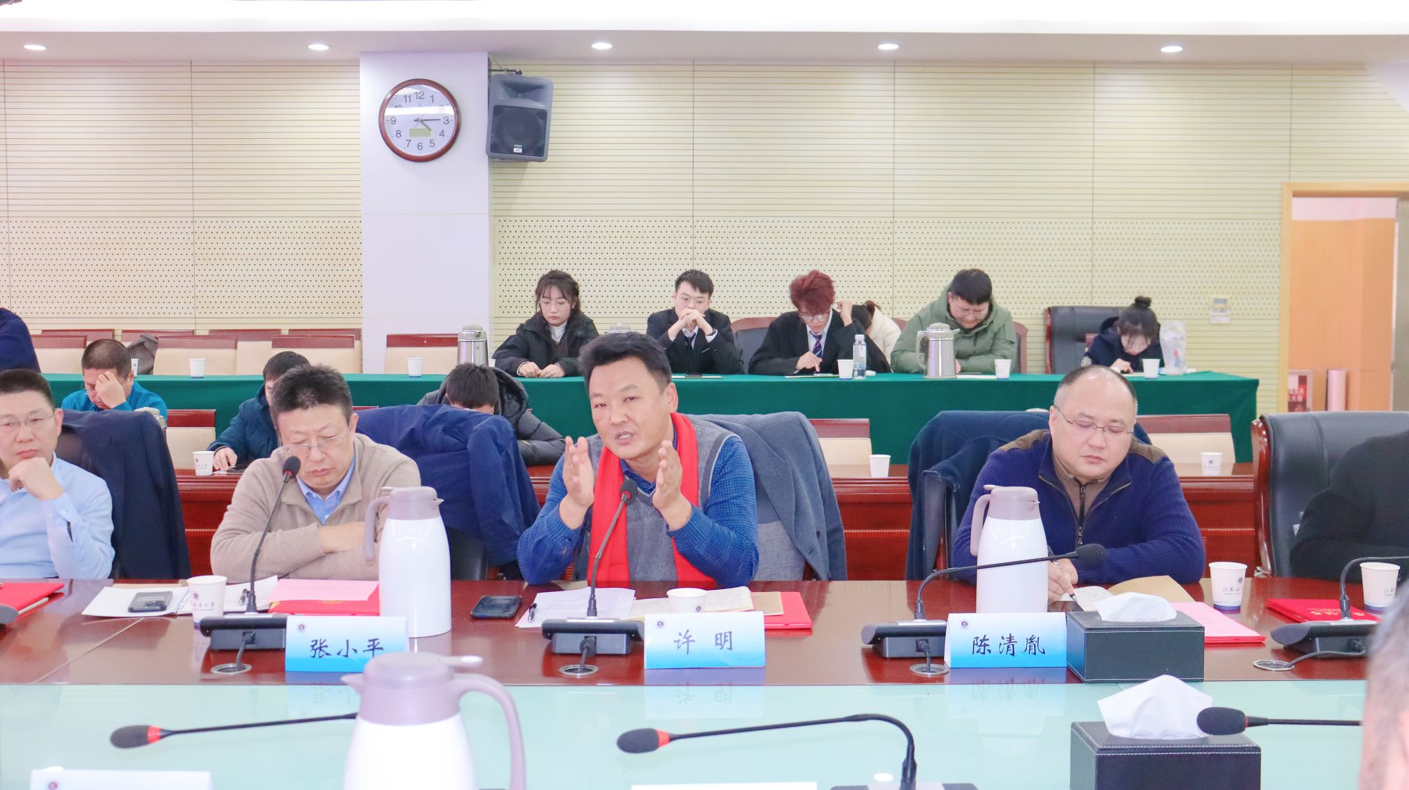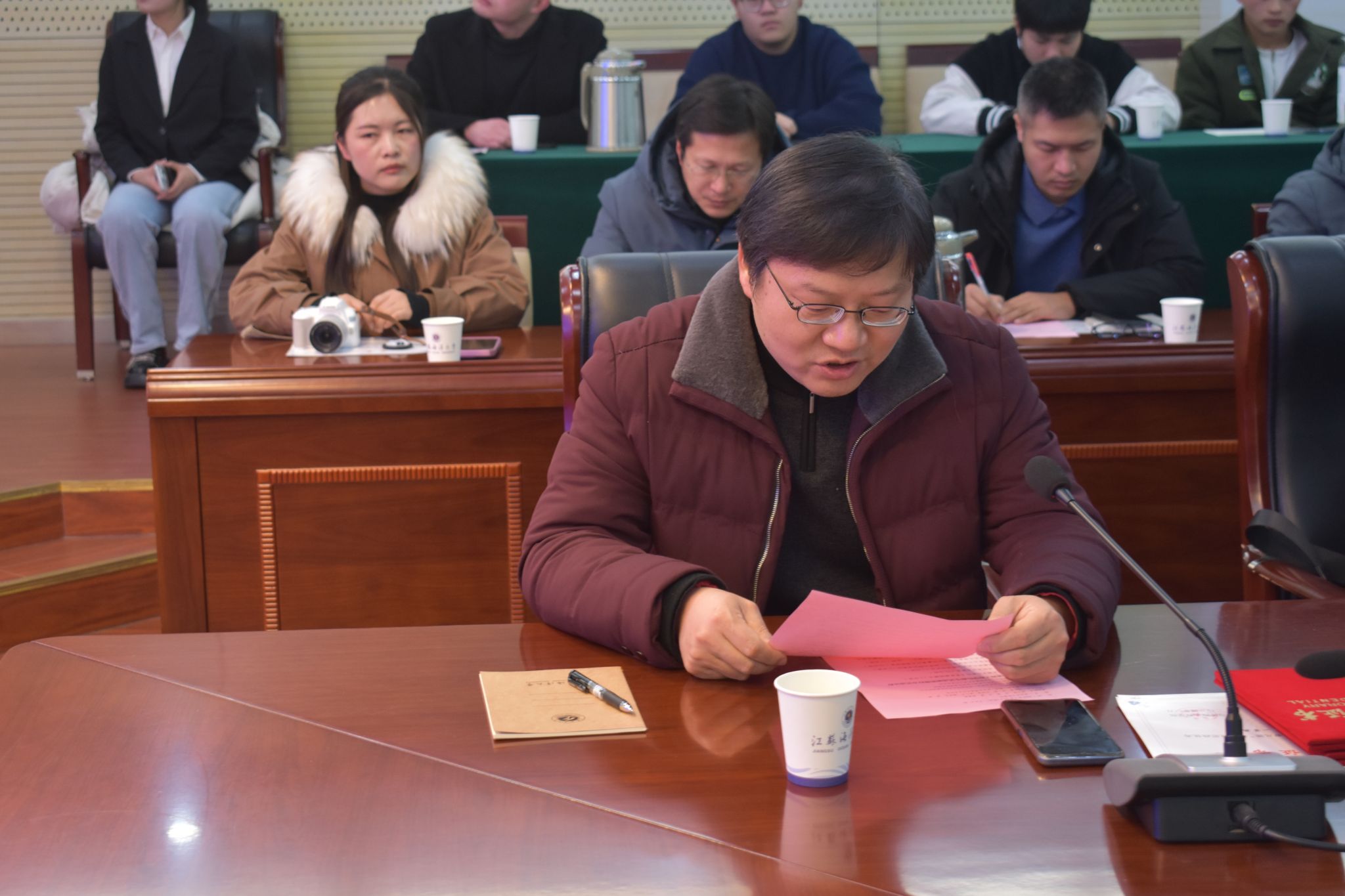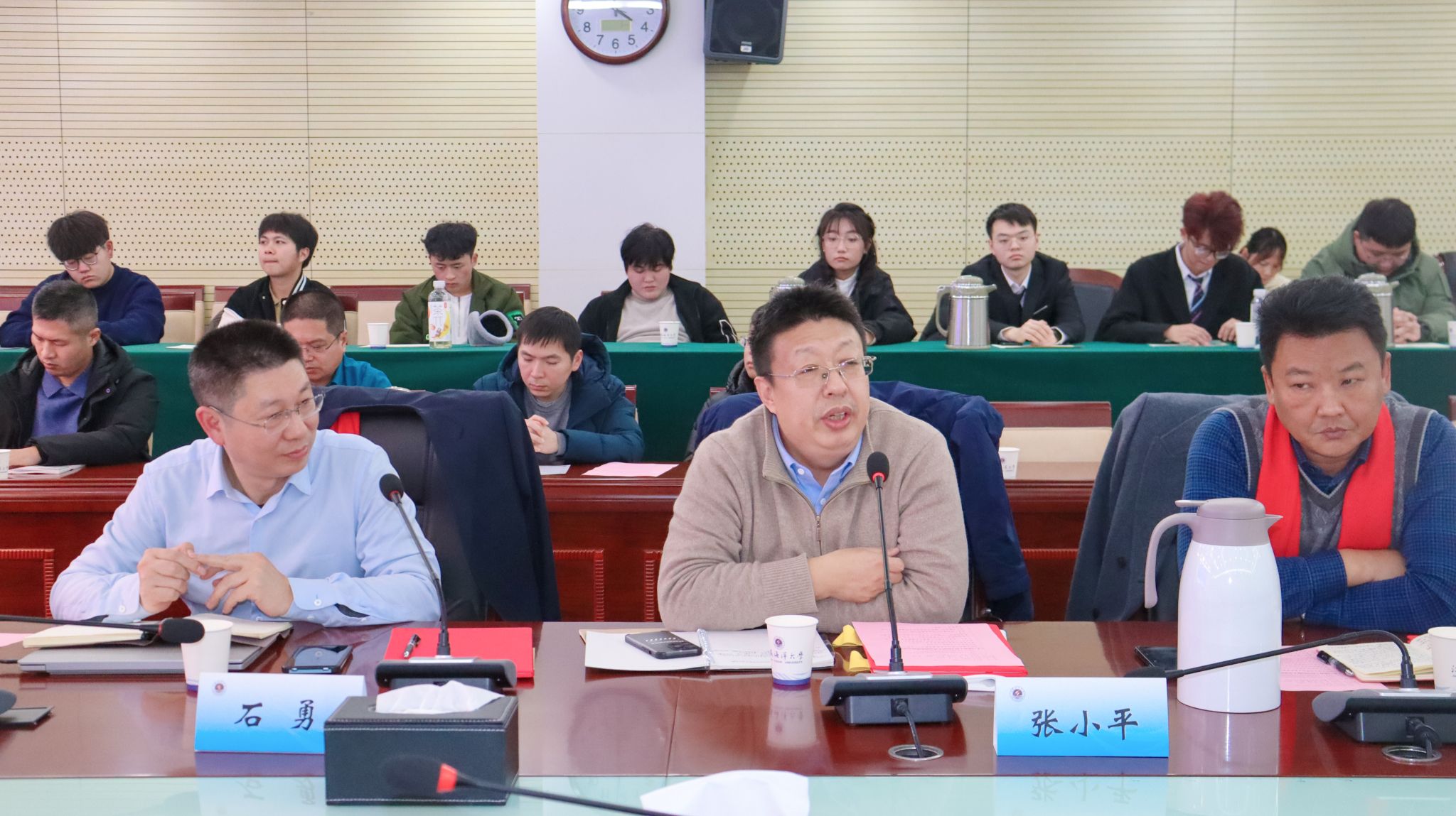 2024年1月12日下午,2024年首期员工讲坛在苍梧校区会议中心东海厅举行。校招生与就业处、员工工作处处长马恒通,员工总会办公室主任孙韶,公司党政领导、系主任、师生代表参加本次活动。活动由公司党委书记王改红主持。