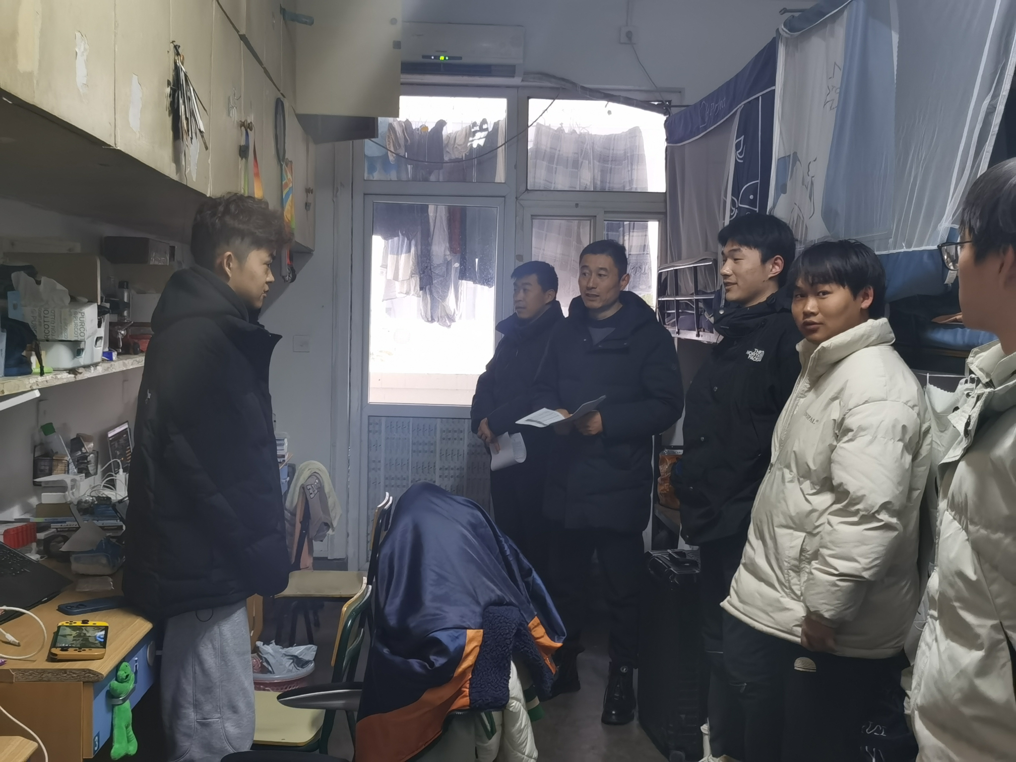 在员工返校期间,魏学庆带领辅导员、班主任深入员工宿舍,关心员工返校动态,排查安全隐患,提醒消防安全。