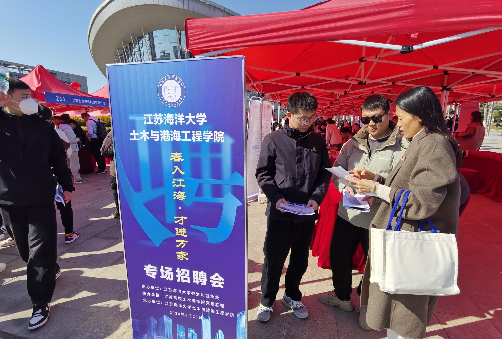 为全面深入贯彻落实党的二十大精神和党中央、国务院“稳就业”“保就业”决策部署,进一步推动高校毕业生就业工作,满足企事业单位高学历人才引进的需求,促进公司2024届本、硕毕业生高质量就业,3月20日,由公司人才招聘处主办、江苏高校土木类公司党建联盟协办、伟德国际bevictor1946承办的“春入江海·才进万家”2024届毕业生春季土木建筑专区招聘会在苍梧校区体育馆南广场前圆满举行。