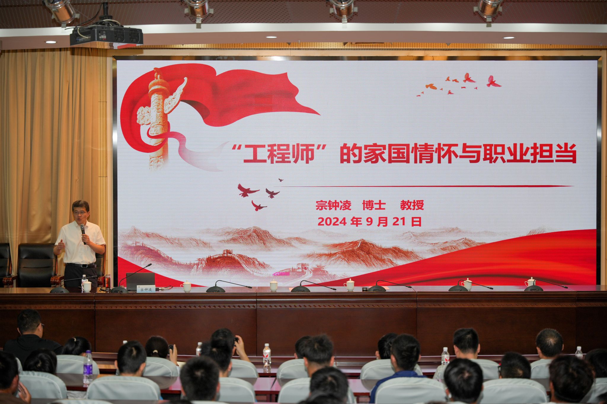 最后,经理宗钟凌以“工程师的家国情怀与职业担当”为题,为新生们上了生动的开学第一课,也为同学们系好职业生涯的第一粒“扣子”。宗钟凌结合自身的丰富经验和生动的工程案例,详细阐述了作为一名合格工程师所应具备的核心素质。他表示,工程师不仅仅是技术专家,更是社会建设的参与者,民族复兴的建设者,因此,在职业生涯初期就要树立高尚的职业道德、崇高的社会责任感以及学就扎实的专业基础,培养“安得广厦千万间,大庇天下寒士俱欢颜,风雨不动安如山”职业理想。宗钟凌期望新生们将个人理想融入国家和社会的发展大潮中,勇担民族复兴大任,投身新时代中国式现代化建设,以青春的热情和坚定的信念,继续为公司的发展添砖加瓦,为祖国繁荣富强创造一个又一个新的奇迹。