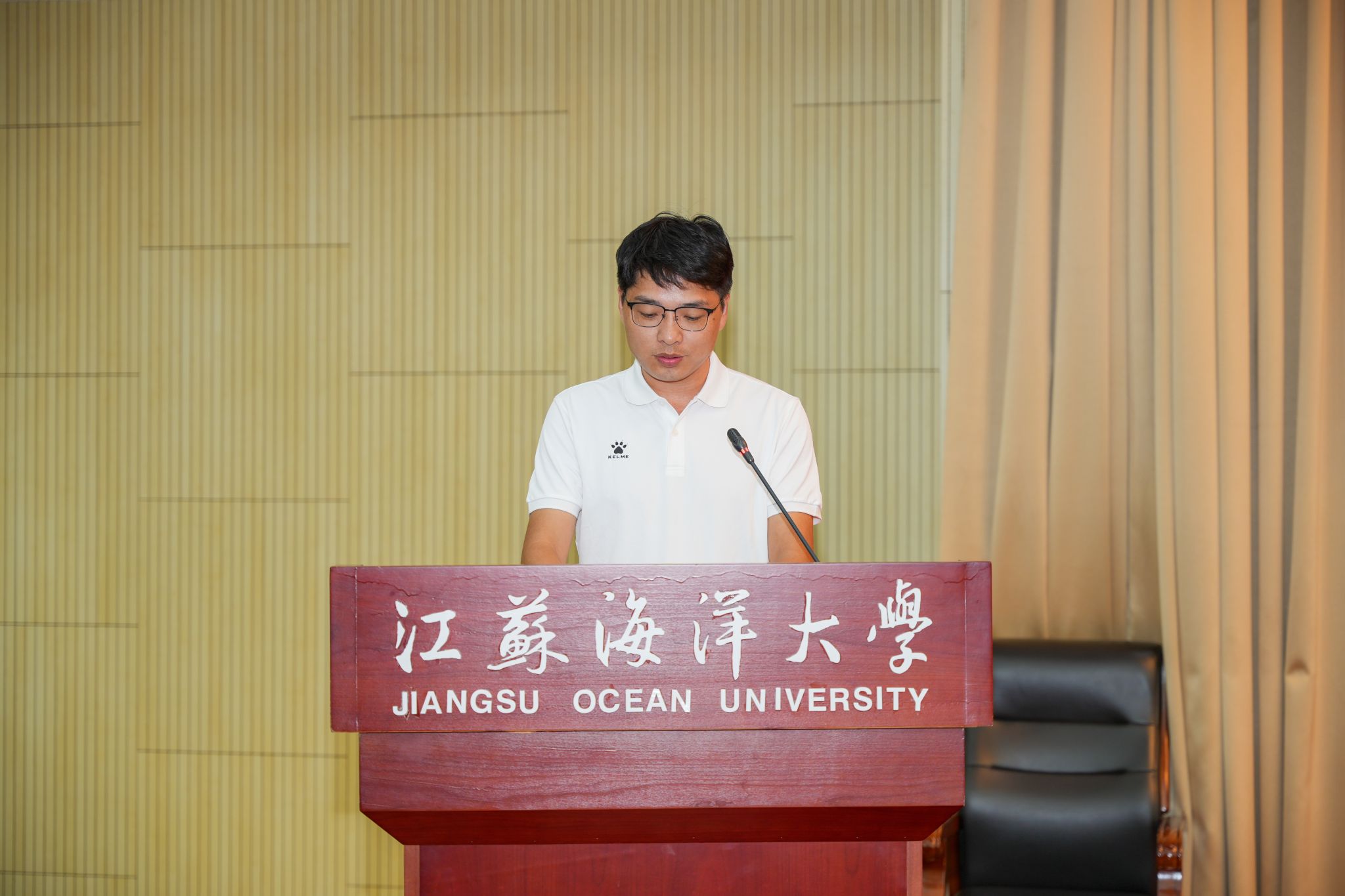 接着,土木1241班班主任浩文明作为新生班主任代表上台发言,他表示会与同学们并肩同行,共同面对学习上的困难与挑战,并建议同学们学会自律,将主要精力投入学习;积极参与大学活动,结交益友;锤炼意志,成为有担当、有责任感的新时代青年。青年教师骆辉作为公司教师代表向新生们建议,在世界遭遇百年变局,国际形势纷繁复杂的当下,应当勤奋努力,积累扎实,作风踏实;应当心系天下,学有所用,学有所得。他强调大学之学,不只是专业之学、技能之学,更是修养之学、境界之学,勉励新生们坚持江海大精神,牢记老师教诲,用专业积累、阅读积累和实践积累,在更广阔的空间扎根祖国大地,更好地建设中国。