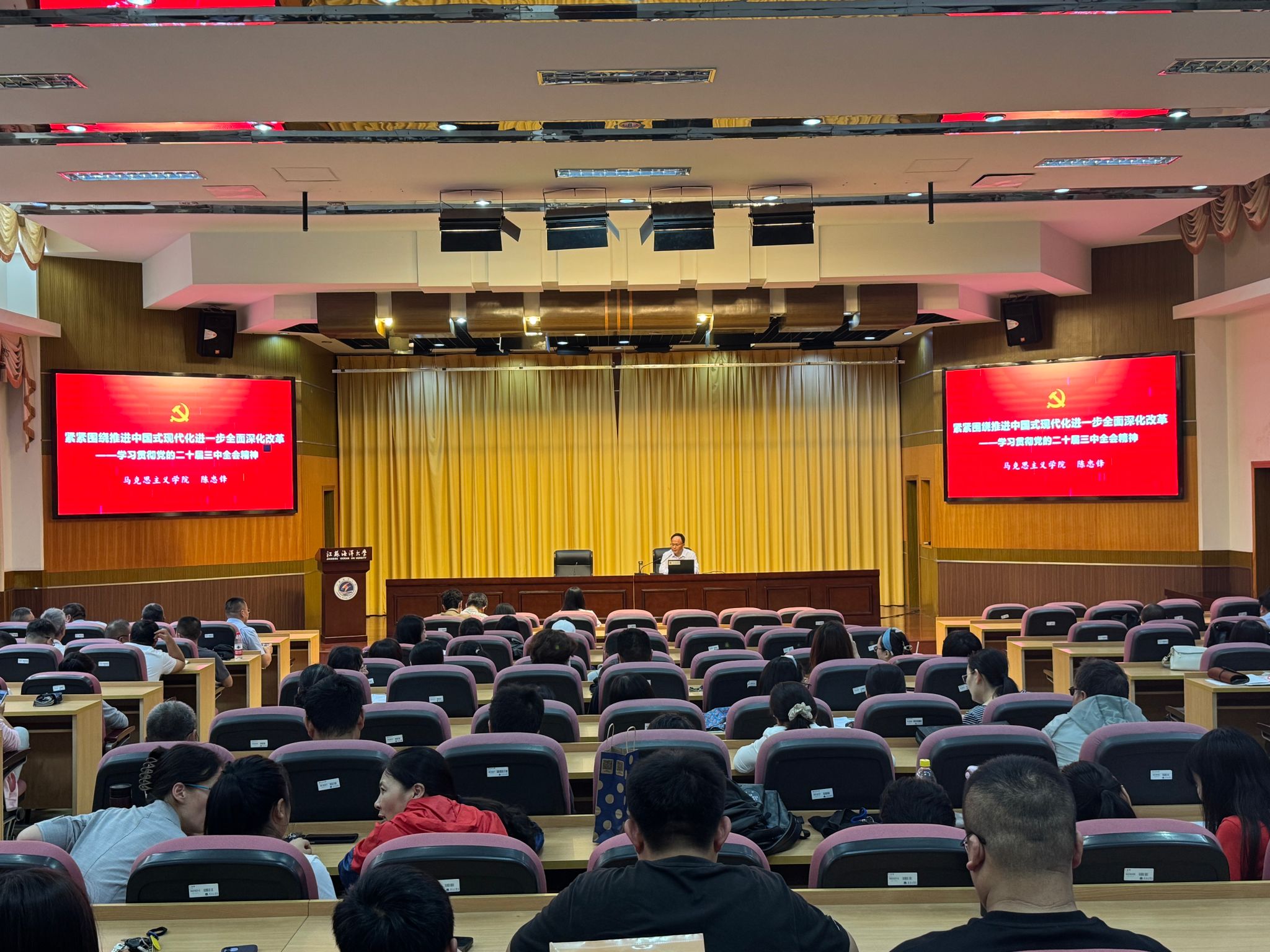 为进一步贯彻落实党的二十届三中全会精神,2024年9月25日下午14:30在文博楼报告厅,外国语公司、伟德国际bevictor1946共同邀请伟德国际bevictor1946党的二十届三中全会精神宣讲团成员、马克思主义公司陈忠锋副教授作题为“紧紧围绕推进中国式现代化进一步全面深化改革—学习贯彻党的二十届三中全会精神”的专题宣讲。会议由外国语公司党委书记田德勇主持。