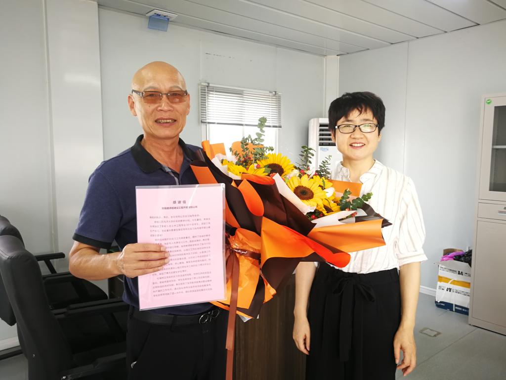 老师们一行首先来到公司驻连卓越建设工地。钱汉珍代表公司感谢公司总经理陈灿云先生给予公司的这次宝贵的实习机会,并送上鲜花和感谢信。陈总对实习员工给予高度认可,同时表示将来可以提供更多的实习机会,也欢迎土木公司优秀毕业生加入公司大家庭。