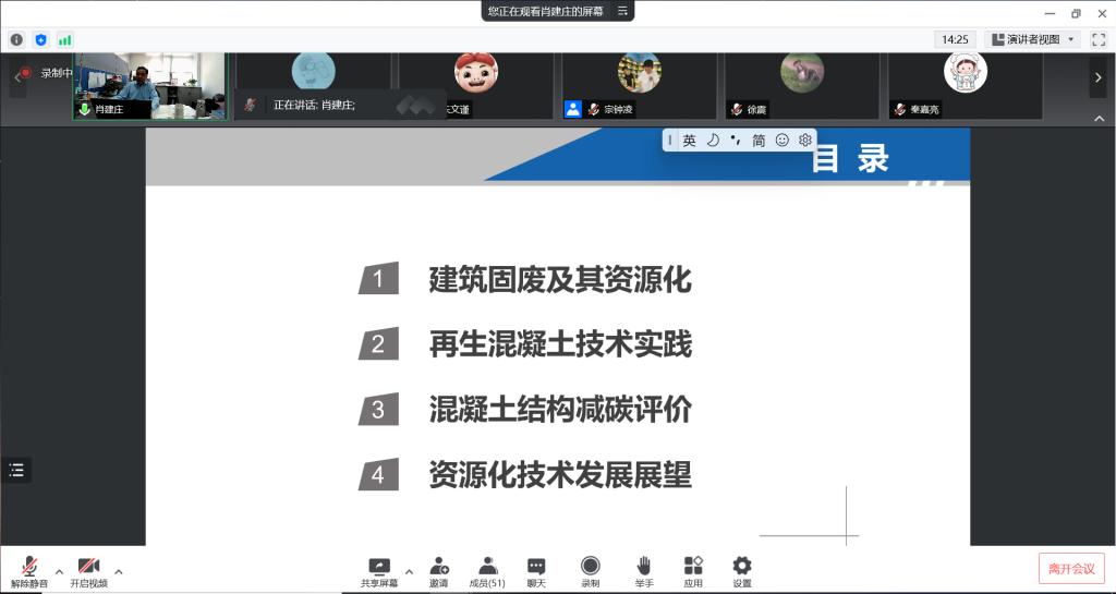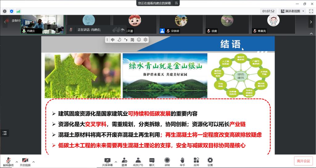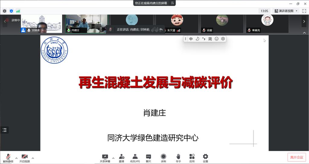 会上,宗钟凌对肖建庄教授来公司作学术报告表示热烈欢迎,并详细介绍了他的学术成就。随后,肖教授从建筑固废及其资源化分析了当前的发展现状,引出减碳理念,然后从建筑固废及其资源化、再生混凝土技术实践、3R(减量化(Reduce)、再利用(Reuse)、再循环(Recycle))原则与资源化技术发展、工程结构可持续性理论和资源化技术发展展望等五个方面生动形象地介绍了自己在再生混凝土技术发展方面的研究成果。肖教授从建造历史出发,贴合学术前沿,结合双碳理念,体现了人文关怀,为公司师生带来了一场精彩的报告。