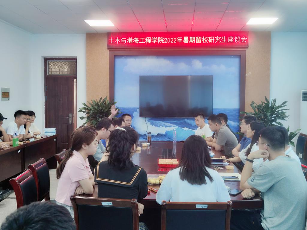 7月15日上午,2022年暑期留校研究生座谈会在土木楼302会议室召开。公司党委书记王改红,经理宗钟凌,副经理朱文谨、蔡小宁,导师代表蒋德稳、武江传,各位辅导员以及公司全体留校研究生参加座谈会。