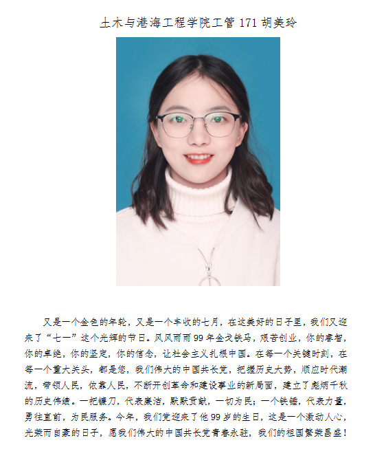 斯时虽逝,薪火永传,为缅怀先辈伟绩,激励后辈奋起,土木与港海工程员工第三党支部全体党员一起行动,为党庆生,并纷纷表达了自己对党、对国家的美好祝福。祝福虽短,情感却深。