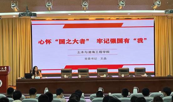 2021年10月10日上午,公司党委书记王晶以“心怀‘国之大者’,牢记强国有‘我’”为题,为全体2021级本科和研究生新生讲授开学思政第一课。