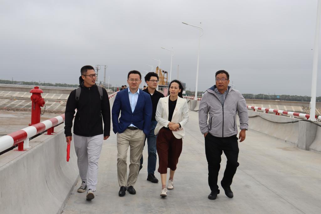 项目负责人徐彬带领大家参观了濒海试验场赣榆综合试验基地海上平台工程主体结构,深入龙门阵列平台及塔吊平台现场,就试验基地及设备间运行情况展开了深入交流。