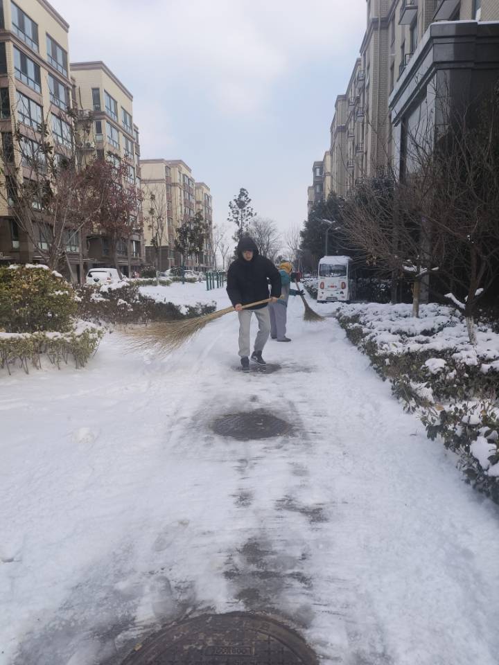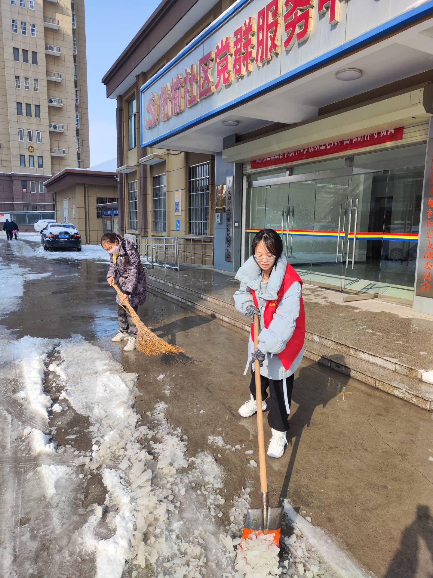 2月23日,支部党员、入党积极分子热情高涨、不畏严寒分别在所在社区、乡镇开展扫雪除冰工作,为广大群众开辟出一道“平安路、暖心路”。