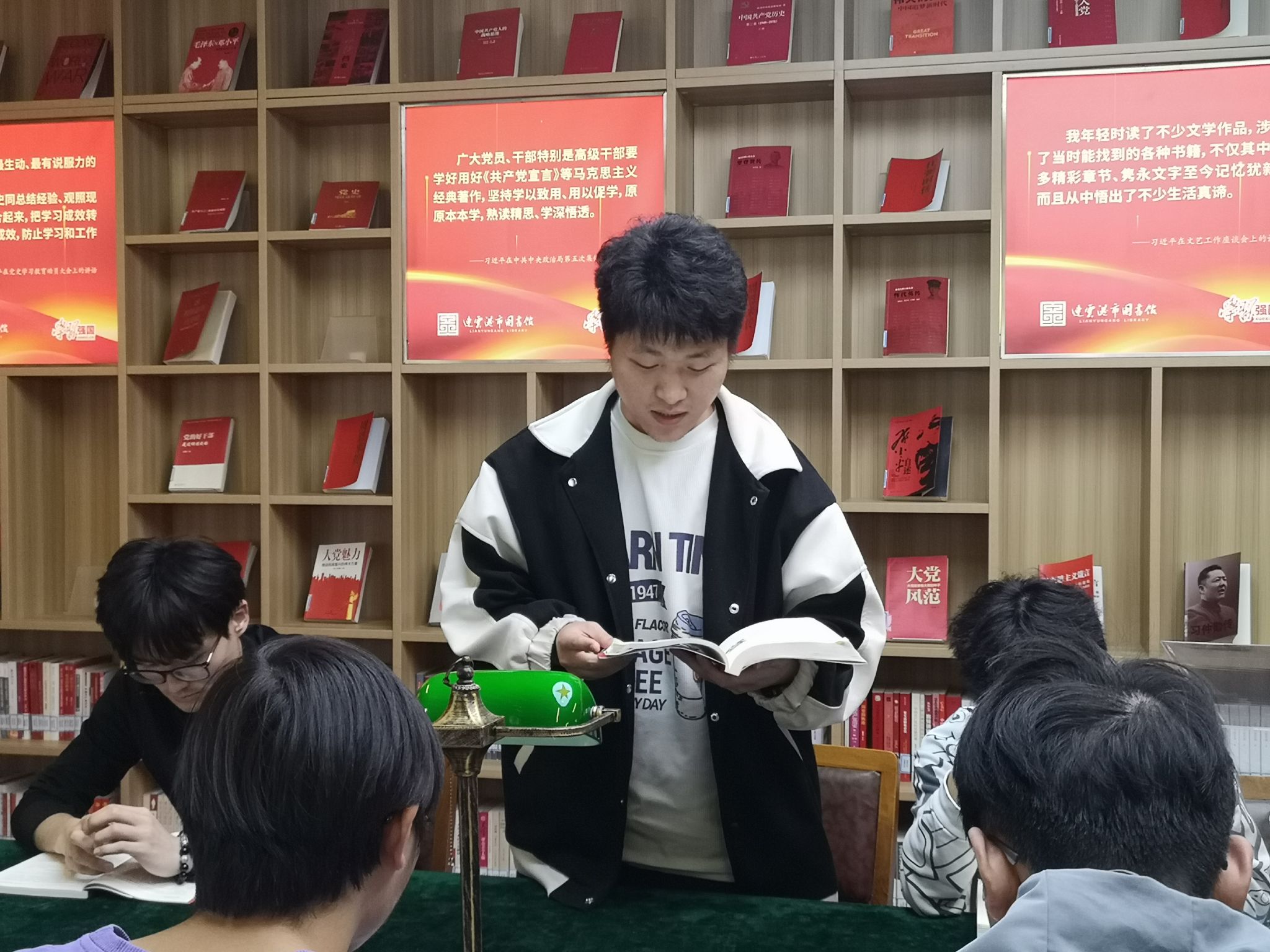 26日活动当天,所有同学齐聚在市图书馆二楼“学习强国”线下体验空间,共同参与这场特殊的阅读盛宴。图书馆内陈列了众多红色书籍,既有革命领袖的论述,也有革命先烈的传记,涵盖了中国共产党领导下的革命历程、理论成果和革命文化等内容。同学们认真挑选了与党纪相关的图书,找到位置坐下来沉下心仔细阅读,偶尔和身边的同学轻声交流重要内容。通过这次阅读,同学们深入了解了党的历史、党的纪律和党内的法律法规等内容,进一步增强了党性观念和纪律意识。