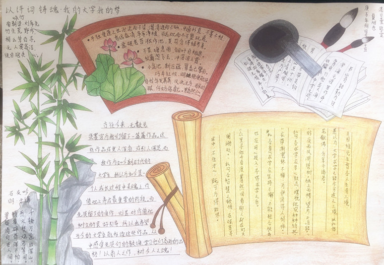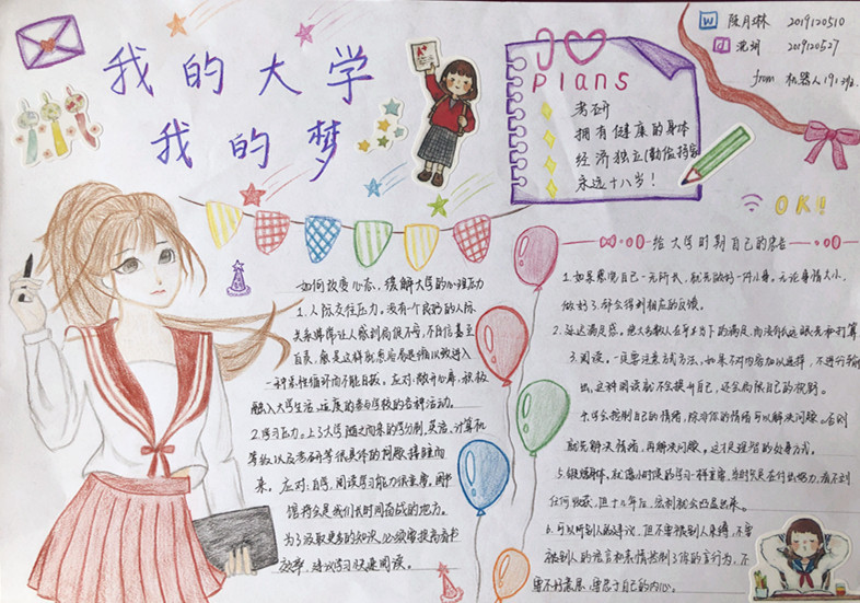 全校同学积极响应号召,利用自己对大学、对梦想的感悟,以手抄报的形式展现出了大学的美好、梦想的美好,表达了当代老员工的心理思想觉悟,以丰富多彩的绘画形式展现了当代老员工梦想的飞扬多彩。本次活动的创作内容表达了当代老员工善于利用大学美好时光,创造梦,追求梦,实现梦的积极向上精神面貌。