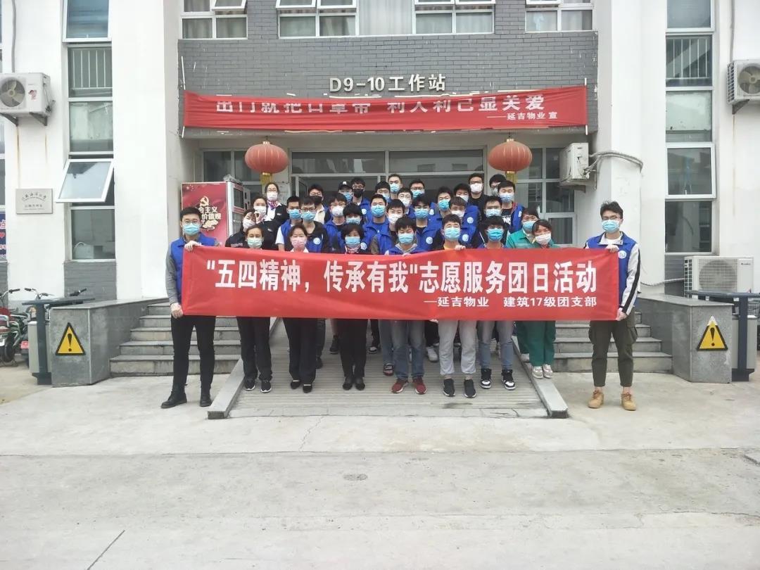 百年后的今天,作为新时代的青年老员工,建筑17级团支部不忘初心,牢记使命,继续继承革命先辈的遗志,发扬五四精神新的时代内涵。下午4时许,团支部全体成员携班主任樊洁阳老师联合员工公寓D区延吉物业共同开展本次志愿服务活动,主要是协助物业宿管阿姨清理D区宿舍楼下的废旧自行车,并将自行车整齐排放、清理现场垃圾等。同时正值防疫抗疫特殊时期,支部成员还主动帮助宿管阿姨完成整个宿舍区的消毒消杀、卫生防控工作。