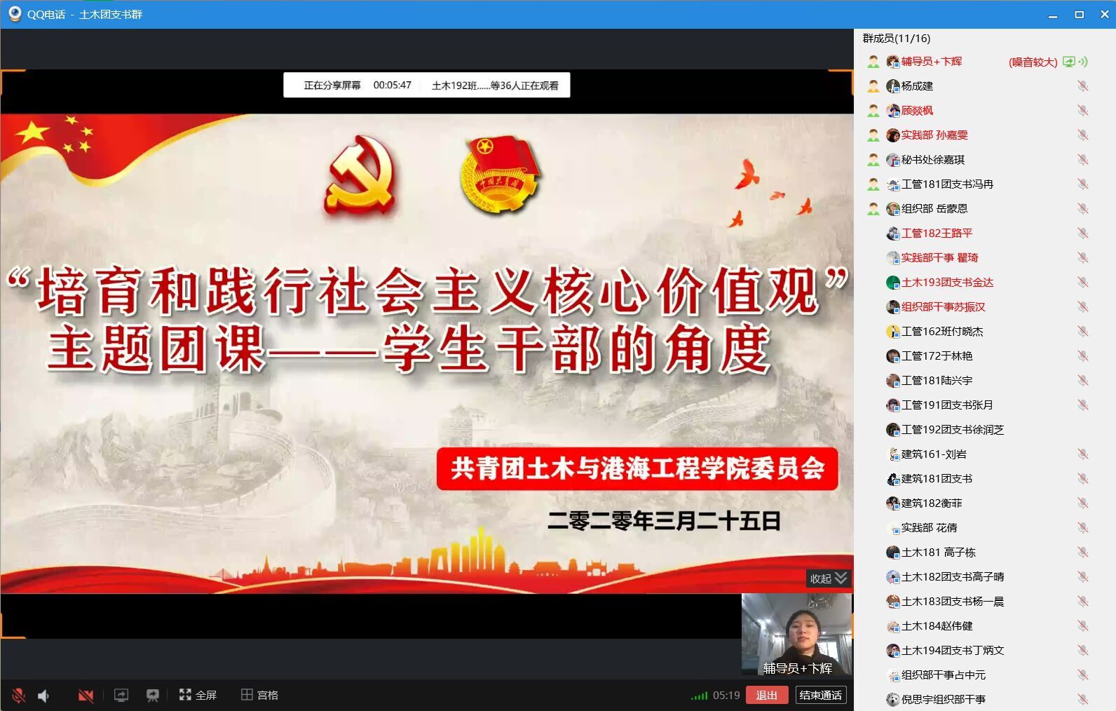 为全面把握社会主义核心价值观的理念内涵,大力弘扬社会正能量,引导青年树立正确的人生观、世界观,把社会主义核心价值观教育落实到共青团工作各个环节,3月25日下午,由伟德国际bevictor1946团委副书记卞辉老师,通过QQ群在线课堂主持开展了面向全院团干部的“培育和践行社会主义核心价值观--员工干部的角度”主题团课。