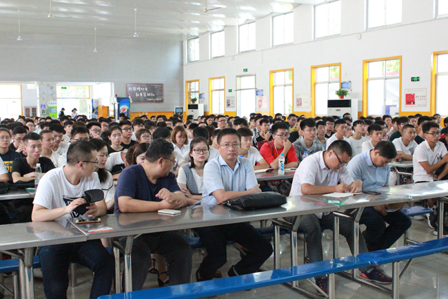 9月2日上午9点30,通灌校区前程餐厅,公司召开2018级新生入学教育大会。公司党委书记吴建新,副经理张三柱、朱文谨、宗钟凌,副书记李明金,各系主任,2018级新生班主任,全体辅导员,2013届员工李卧蛟以及2018级全体新生参加大会。