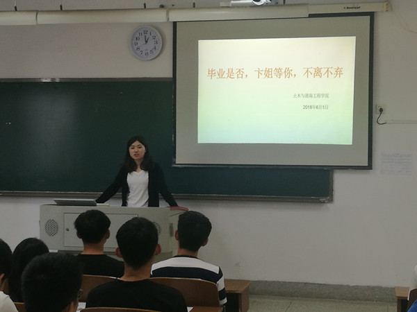 2018年6月1日中午1点,土木公司举办了毕业生心理座谈会,公司副经理、副书记李明金,辅导员郭利、樊洁阳和卞辉老师参加了本次座谈会。