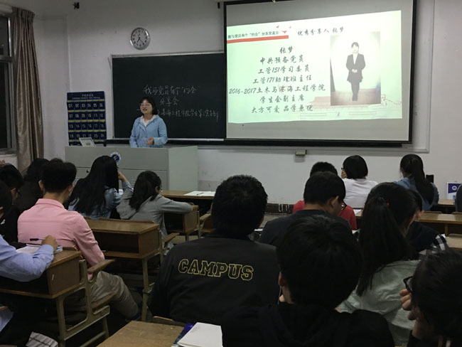 本次分享会邀请了2015级的陈嘉陶、张梦,2016级的金歌、孙彪四位党员,让他们给大一的入党积极分子分享其与党员“约会”的故事概况、所思、所得与所想,以及在大学期间如何成长成才的个人经验和体会。