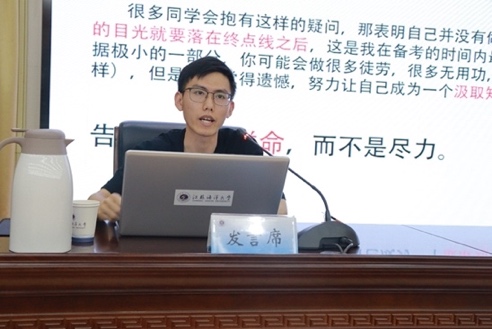 7位成功上岸的学长学姐进行了经验交流。他们分别从考研流程、每日作息规划、参考书目的选择、复习进度的分配、学硕与专硕优劣势分析、分科复习有效方法和思维导图、考点中的重点难点和陷阱以及考研注意事项进行了分享交流,并对考研途中的心态调整、压力管理和挫折应对给出了解决办法,满满的干货让与会同学兴奋不已。