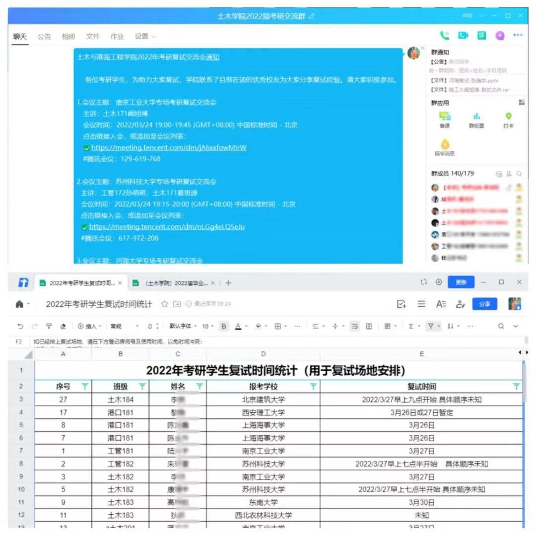 为最大程度解决员工复试困难,辅导员搭建考研交流群,通过视频会议、云谈话等途径了解员工诉求,精准摸排员工复试信息,分类统计并建立考研复试工作台账,四处收集调剂信息,助力考研学子们成功上岸。