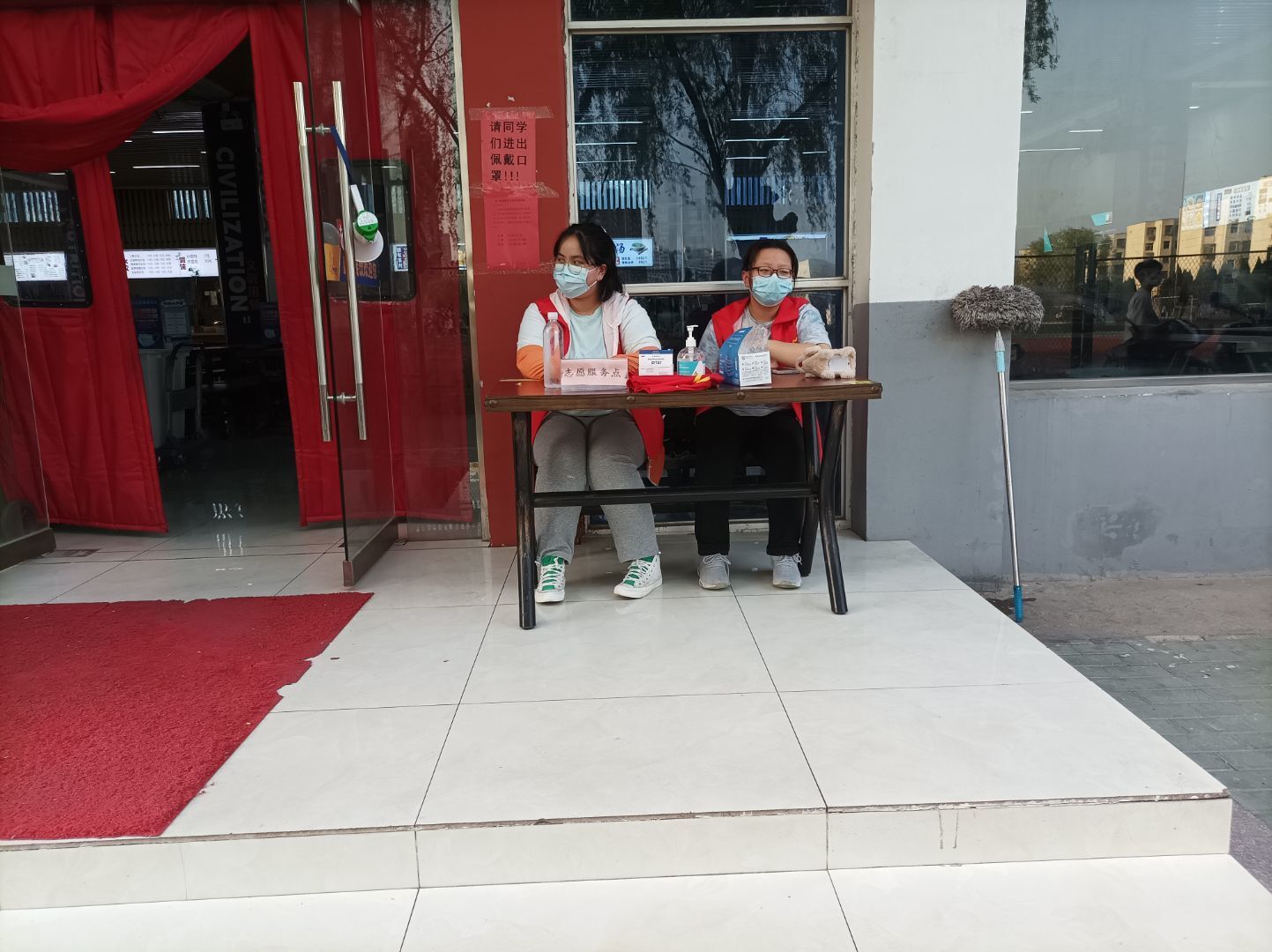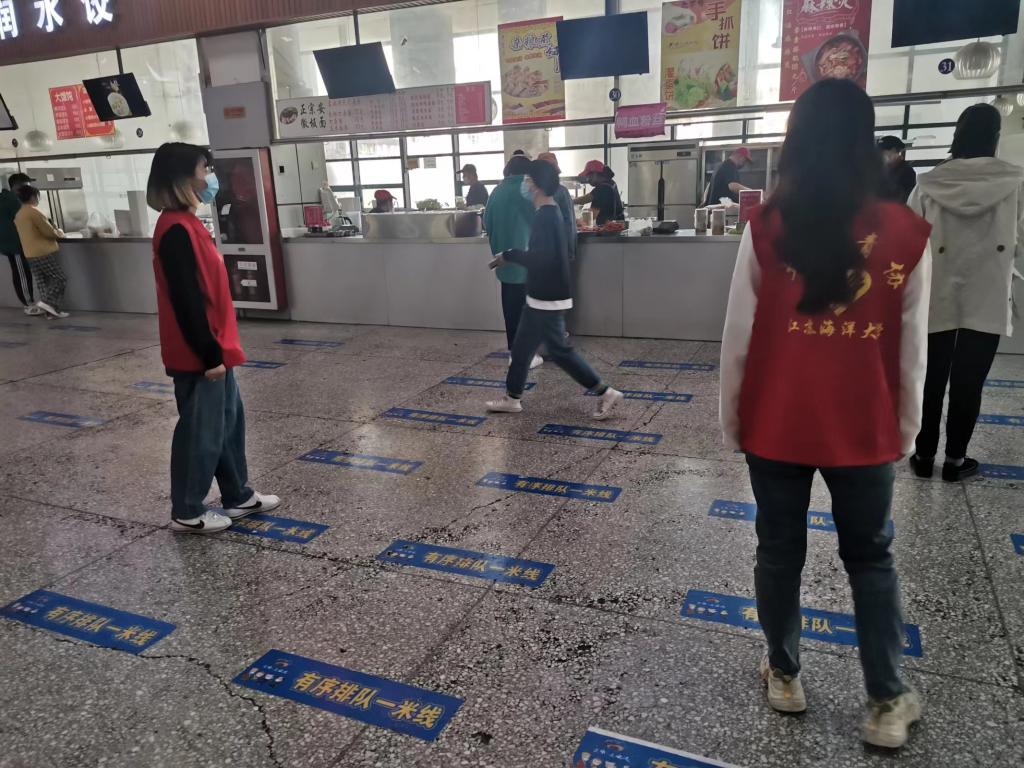 在两个校区的各个食堂,中午和晚上分别有近两个小时左右的时间是就餐高峰期,志愿者们提前到达规定岗位,开始自己忙碌而充实的志愿服务工作。他们有的负责监督同学们规范佩戴口罩,有的负责在食堂门口给前来就餐的同学测量体温,有的负责时刻提醒大家保持安全距离,还有的则负责帮助食堂阿姨清理餐具、餐桌等。虽然天气闷热,可能自己还饿着肚子,但志愿者们依旧尽心尽责地开展服务,保质保量地完成自己的工作任务,充分彰显了雷锋精神和“志愿者精神”。