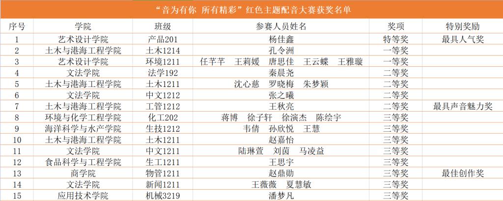 经过两轮激烈的角逐,本次红色主题配音大赛圆满落下帷幕。在来自各个公司投稿的235份作品中,经过作品初选、专家评审、网络投票、综合决选等环节,最终评出特等奖一项,一等奖两项,二等奖四项,三等奖八项,以及最具人气奖、最具创意奖、最具声音魅力奖各一项。