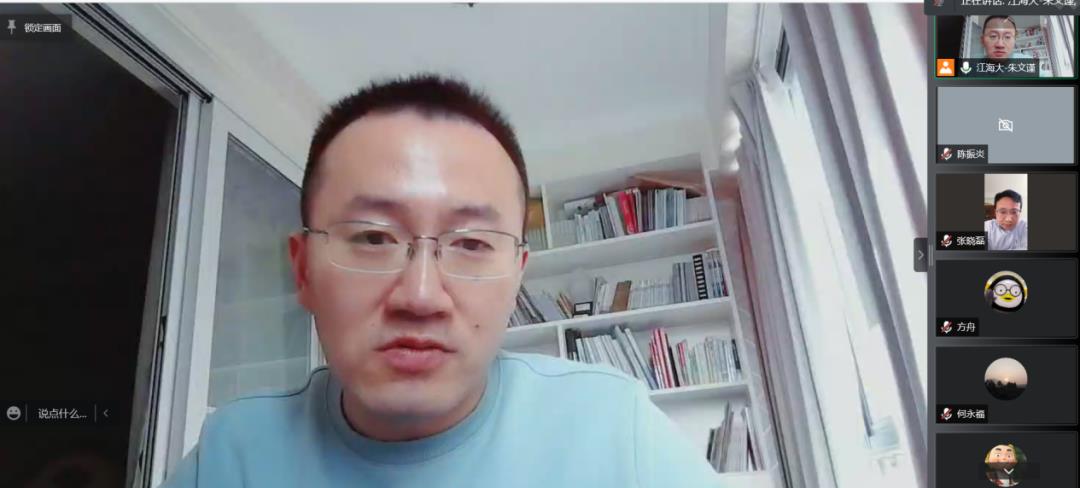在张博士汇报结束后,朱文谨为本次报告做了简短的总结,并让在场的师生积极提问和发言。作为张博士大学时的班主任,武江传老师回忆了当年张博士的校园时光;蒋德稳老师则仔细询问了张博士的研究方向,并交流了许多学术细节;研二员工朱峥的研究方向“基于贝叶斯网络的农村危房风险管理研究”与张博士的研究项目恰有共通之处,他就其中的数据监测方案提出了自己的疑问,张博士耐心细致地为其讲解;朱文谨副经理也提出了结构分析、风险预监测模型的附加荷载选择等问题,张博士一一与其探讨并做出解答。
