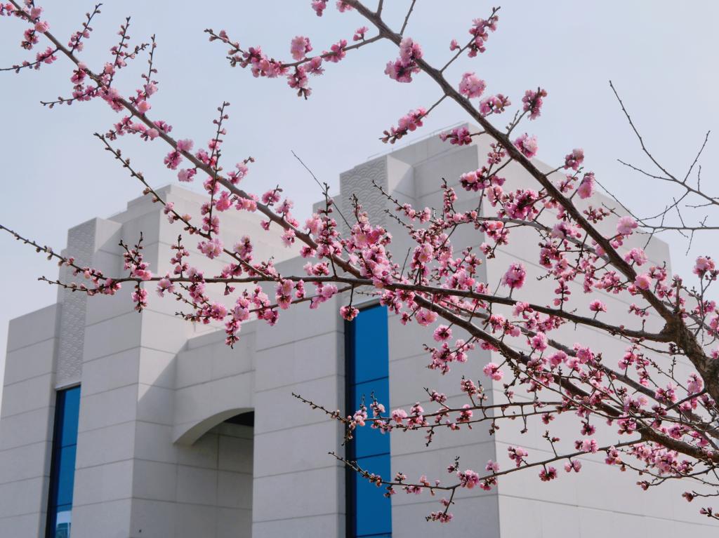 作品介绍:春日美丽的植物与恢宏建筑的结合,展现公司良好的生态环境,为同学们营造了生活,学习,愉悦心情的氛围。