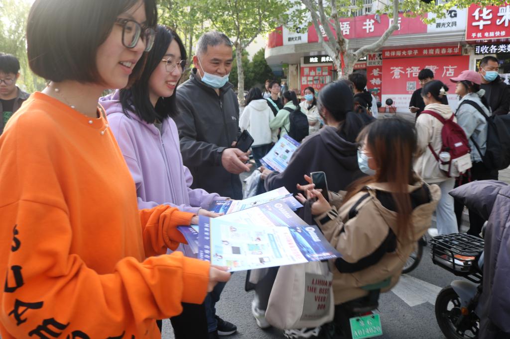 讲座结束后,参会的同学们前往一食堂广场观看“反邪教”宣传海报,派发防诈骗宣传单并在“维护国家安全,从我做起”的横幅上进行签字。