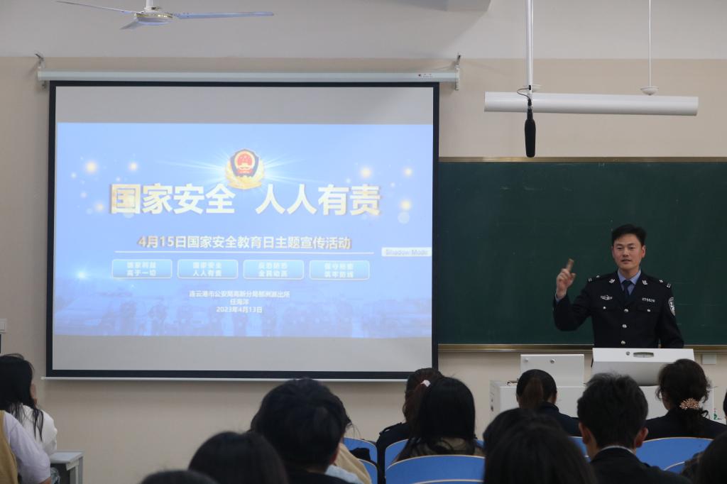 2023年4月15日是《中华人民共和国国家安全法》颁布实施以来的第八个全民国家安全教育日。伟德国际bevictor1946积极响应,于4月13日下午在文华楼108参加由公司保卫处主办的国家安全知识讲座。本次讲座邀请郁州派出所所长任海洋担任主讲人,辅导员樊洁阳与各班级的安全信息员参与本次讲座。