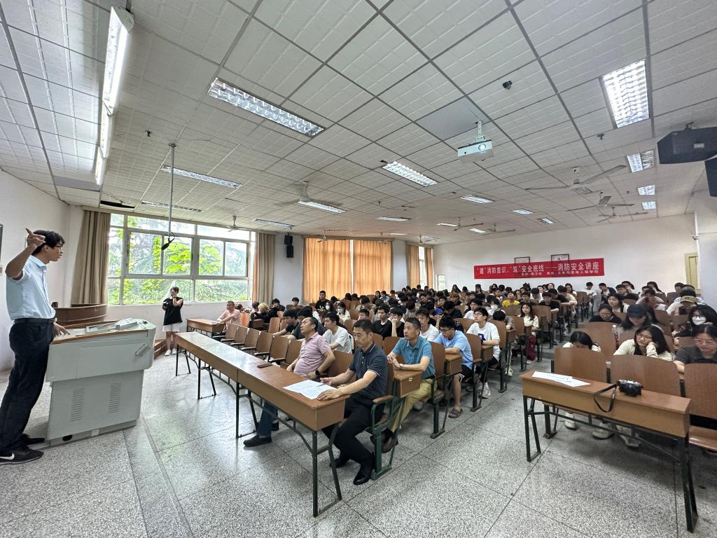 魏灵钢结合典型事例视频重点从同学们中容易发生的电动车及其电池充电、手机充电宝错误充电行为及宿舍抽烟等行为向同学们作警示教育,并就一些大家容易忽视的风险点进行提问,同学们在讲座中认真听讲,汲取经验教训,增强安全工作的思想自觉、责任自觉和行动自觉。