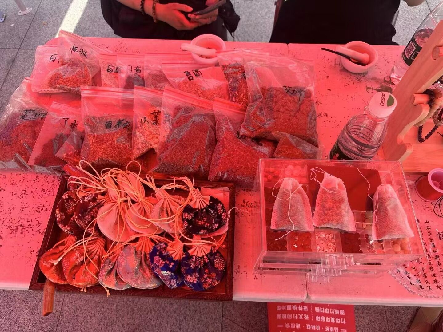 活动现场,同学们穿梭于各个摊位,挑选自己喜爱的商品。广场上的吆喝声和讨价还价声交织在一起,此起彼伏,为校园增添了浓厚的节日气氛。手工艺品摊位上,香囊的制作原料香气四溢,香囊作为国家级非物质文化遗产,不仅具有实用性、审美性,更体现了中华文化的深厚底蕴。通过售卖香囊,员工们深入了解了香囊的文化内涵和历史传承,感受到了中华优秀传统文化的博大精深。