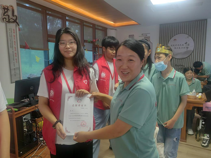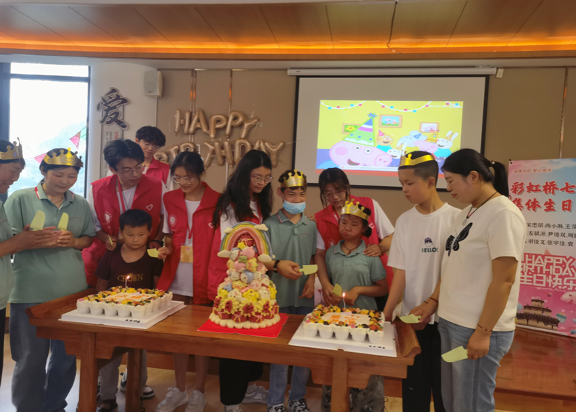 在赣榆区新时代文明实践中心,7月的阳光洒满大地,7月8日,“温暖彩虹,爱心海洋”关爱心智障碍者及其家庭暑期社会实践团队的第二批志愿者用爱心和热情,为全体家长和孩子们举办了一场别开生面的集体生日会暨本次社会实践的告别仪式。