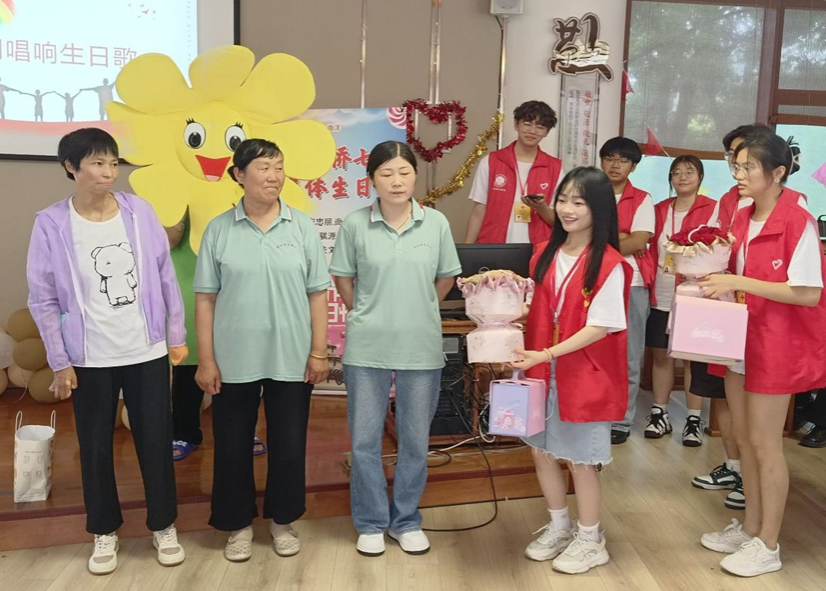 随后,志愿者们为过生日的家长和小朋友们送上鲜花和礼物,寓意着对他们生日的祝福和关爱。在欢声笑语中,志愿者们带领小朋友们一起吹蜡烛、许愿、切蛋糕,将甜蜜的祝福传递给每一个家庭。此次生日会不仅为家长和孩子们带来了欢乐和温馨,更展现了彩虹桥志愿服务团队的精神风貌。他们用实际行动传递着爱心和温暖,为社区文化建设注入了新的活力。