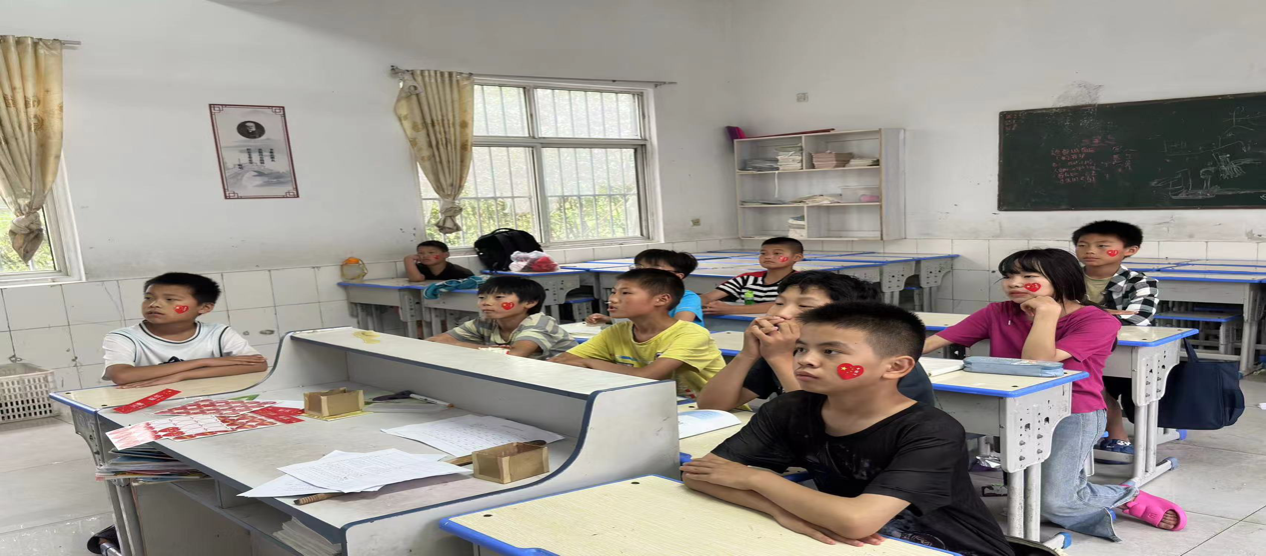 支教那几天,天空不作美,淋淋沥沥下了几天雨,但依旧泯灭不了孩子们对知识的渴望以及支教团传授知识的炽热之心。这里的孩子由于家庭等多种原因,教育资源或多或少有些缺乏,支教团秉持着与时俱进的原则,在7月1日建党节,用通俗易懂的语言向孩子们讲述党的故事、传颂英雄之歌,通过老师的循循善诱,孩子们都自发在书桌贴上了“我爱中国”的贴纸,激励自己爱党爱国,心怀寥廓之志,在这一天,老师与孩子们一起唱响了《孤勇者》以表达对党的敬爱之情。