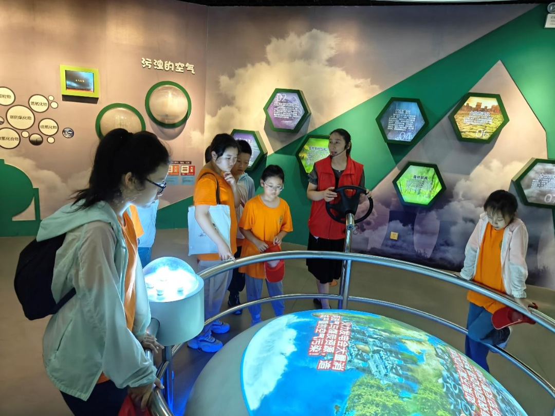 东海科技馆内,在东海生态环境局耿小迎和科技馆馆长、讲解员的共同带领下,同学们看到了各种平时从而见过的科技展品和互动装置,并通过自己的眼、耳、手、脚等多种感官亲身体验了各种科技发明的奇特与魅力。其中学员们重点参观了三楼的环保展区,环保展区中设有消防、交通、人防、环保等多个展区项目和体验活动。在垃圾分类的专题展示区,讲解员通过图文、视频、互动、实践操作等多种形式详细介绍垃圾分类的含义、目的和操作方法,通过模拟向河里乱扔垃圾等场景,让学员们亲身体验到不良环保行为对环境的危害。在体验“地球警示器”的过程中,学员们亲身感受到过度的浪费水资源、电资源以及过度排放汽车尾气等行为会给地球带来诸多灾难性后果,从而也大大增强了他们的环保意识和社会责任感。