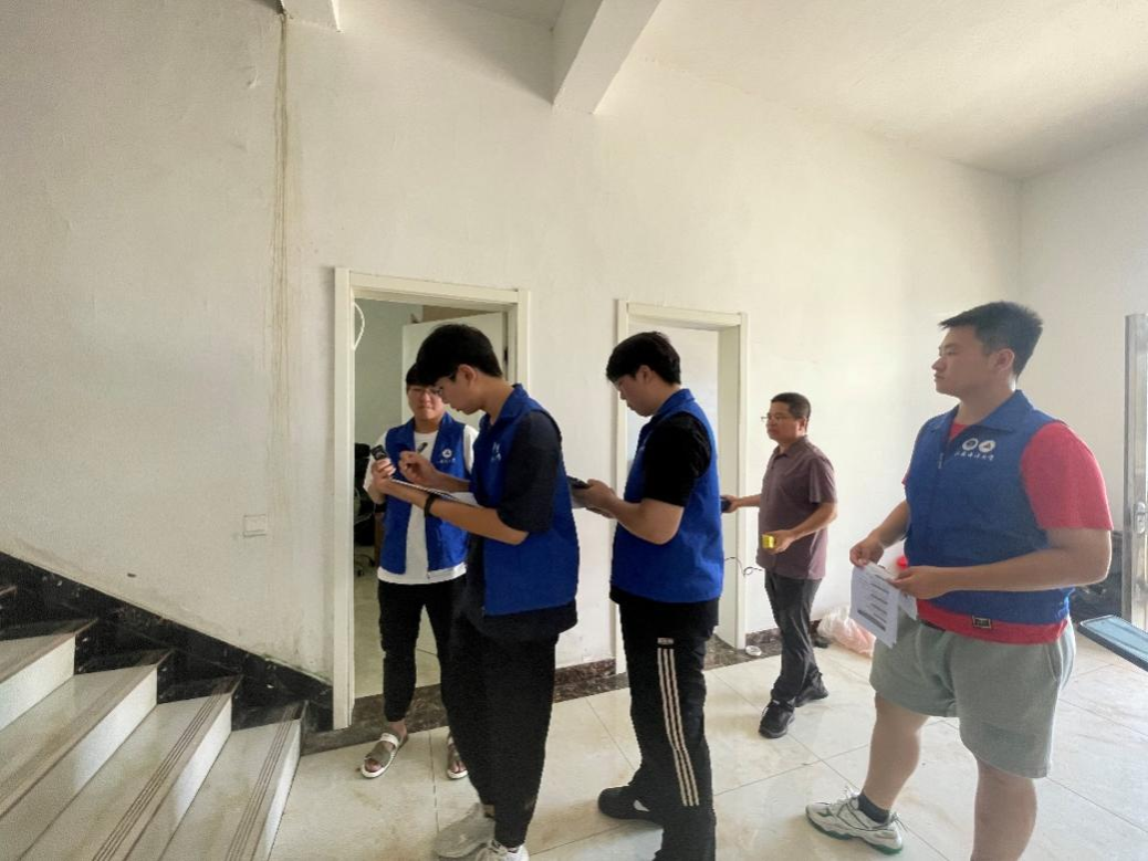 最后,为了进一步加强宣传力度,验证农房自主评测系统的可靠性,团队来到东辛村当地居民家中进行了房屋安全的实地检验及农村自建房屋安全风险的宣传,居民对团队的到来表示了热烈的欢迎和积极的配合,也进一步体现了居民对房屋安全的重视和担忧。