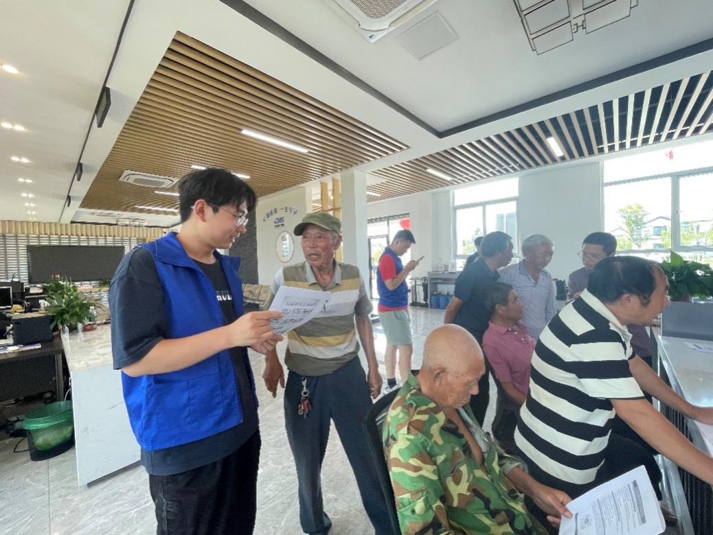 在东辛村党群服务中心,实践队员同指导老师、连云港市房管中心的工作人员一起,现场针对当地居民存在的各种农村自建房屋安全风险问题进行详尽解读,对他们开展农房危险性鉴定知识科普、发放相关宣传资料,同时向村民宣传使用实践团队自主开发的农村居民自主鉴定评测房屋系统。农村房屋自主测评系统是一款基于贝叶斯神经网络和多层感知器的综合数据分析系统,该系统能够根据用户上传的房屋基本休息、房屋实际情况、地质水文条件等初步拟定房屋整体危险性判定结果。团队旨在实现基层人员能够快捷自主鉴定房屋,在房屋安全风险的初期为住户和基层人员提供警示作用。