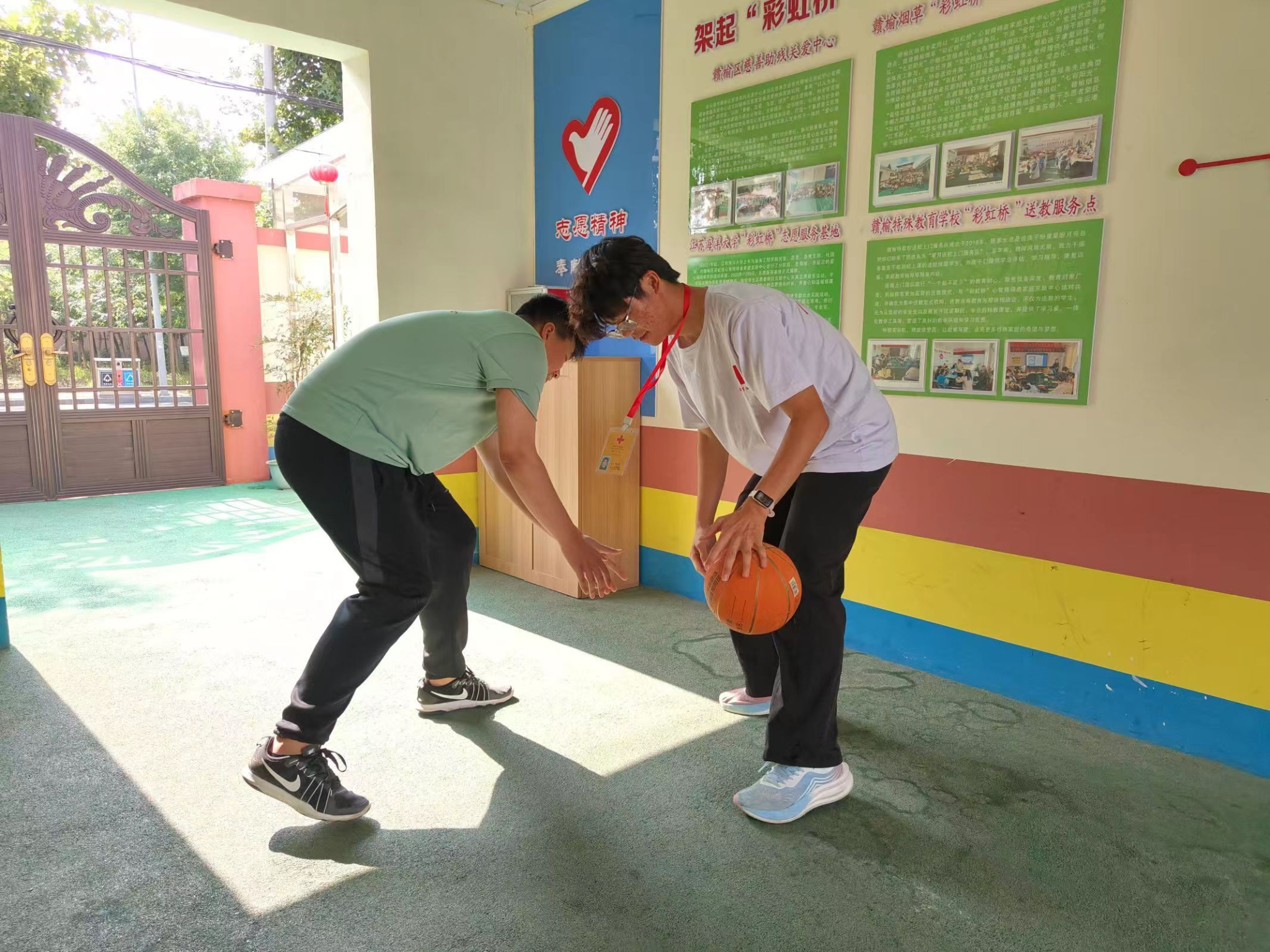 在篮球场上,他们挥洒汗水,笑声与加油声此起彼伏,从最初的混乱到井然有序,孩子们在志愿者的陪伴下,体验着运动的快乐与团队的力量。志愿者与他们一起比赛着激励着他们,不怎么运动的小朋友也在热情洋溢的氛围下加入了进来,汗水与笑声齐飞。