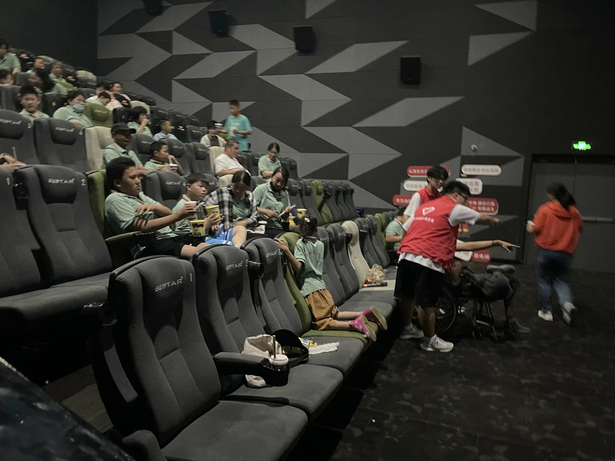 在活动的尾声,全体成员共同走进电影院,享受了一段温馨的观影时光。家长们陪伴着孩子,志愿者在一旁协助,孩子们脸上的纯真笑容,让整个场景充满了爱与温暖。